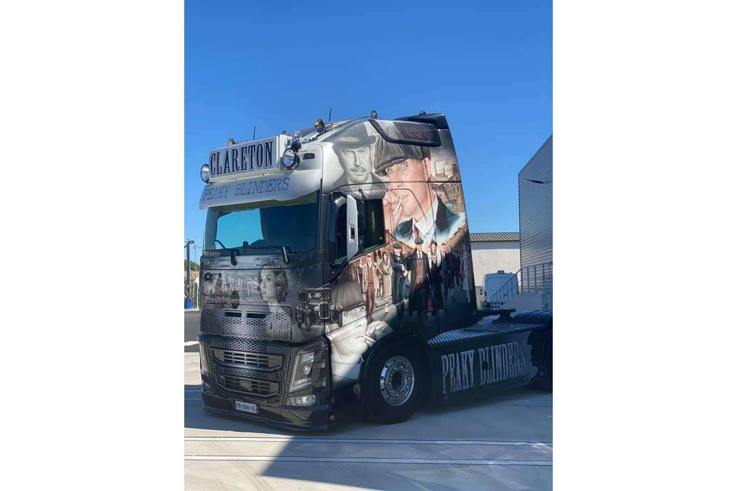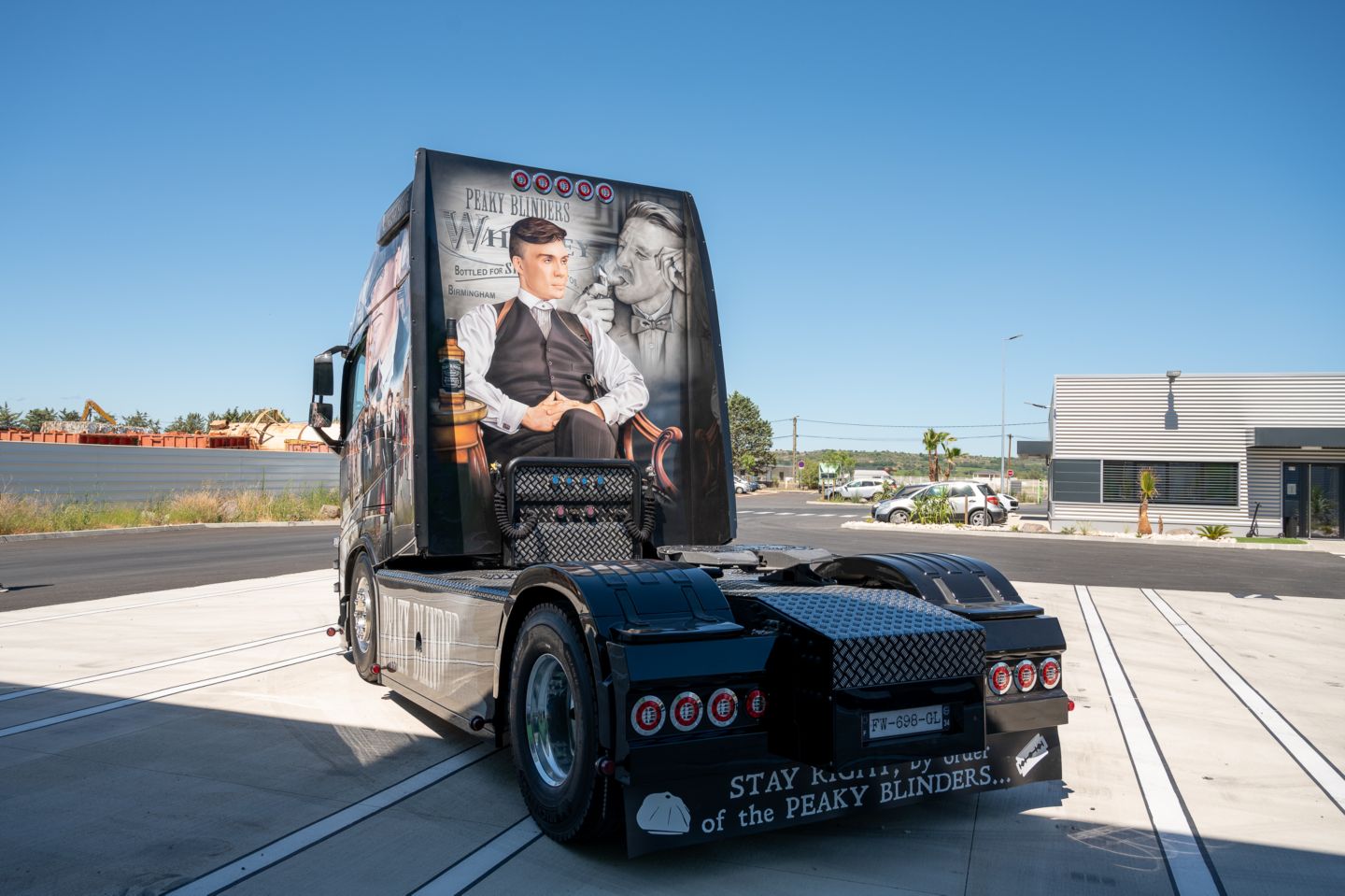 Voici, en avant-première, un Volvo FH XXL personnalisé PEAKY BLINDERS, livré aux Transports CLARETON le 30 juin et qui sera exposé à l’occasion du Grand Prix camions de Nogaro ce week-end – 3 et 4 juillet. Un projet né il y a un an du côté de Beziers (34) et qui fait la fierté de Volvo Trucks France.
