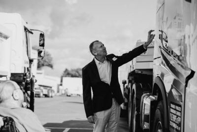 Toujours curieux des nouveautés, Bertrand Le Pape a récemment testé en démonstration un Volvo FMX 8x6 tombereau 40 tonnes, et s’est montré très intéressé par les solutions électriques. L’entreprise a déjà réalisé un essai de deux jours avec un camion électrique Volvo.