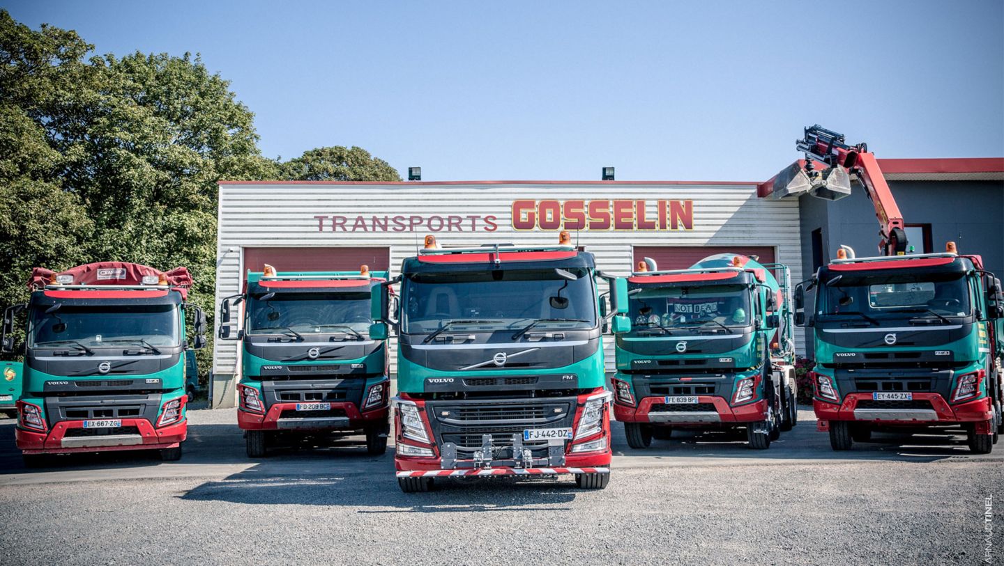 Les Transports Gosselin possèdent un parc de 60 véhicules et 20 machines pour le terrassement. Ce parc est composé essentiellement de véhicules Volvo, avec notamment des porteurs bennes, bi-bennes, bi-bennes grue, toupie à béton, des tracteurs routiers avec bennes TP, céréalières ou porte-engins. Les carrosseries et les peintures spécifiques des véhicules verts et rouges sont réalisées par la Carrosserie Preud’Homme de Saint Romain de Colbosc.