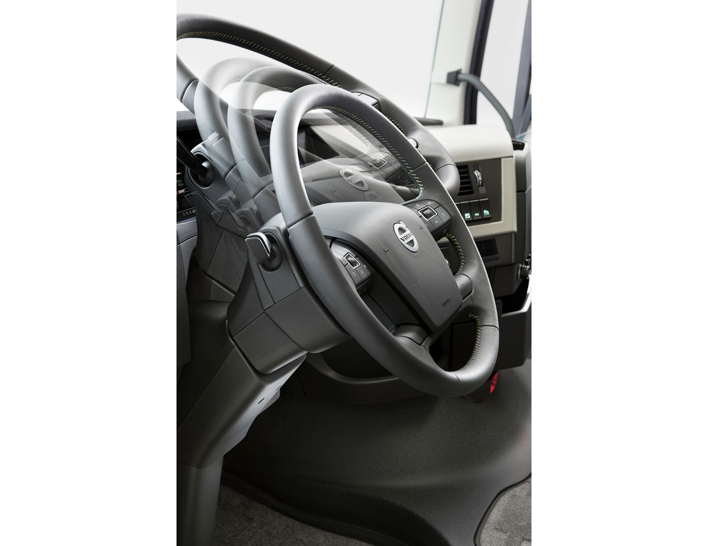 L’intérieur de la cabine bénéficie d’un nouvel intérieur exclusif en cuir comprenant : volant, sièges et panneaux de portes. Le logo Volvo en relief ainsi que le drapeau suédois cousu sur les sièges, reflètent le haut niveau de qualité des matériaux de la cabine.