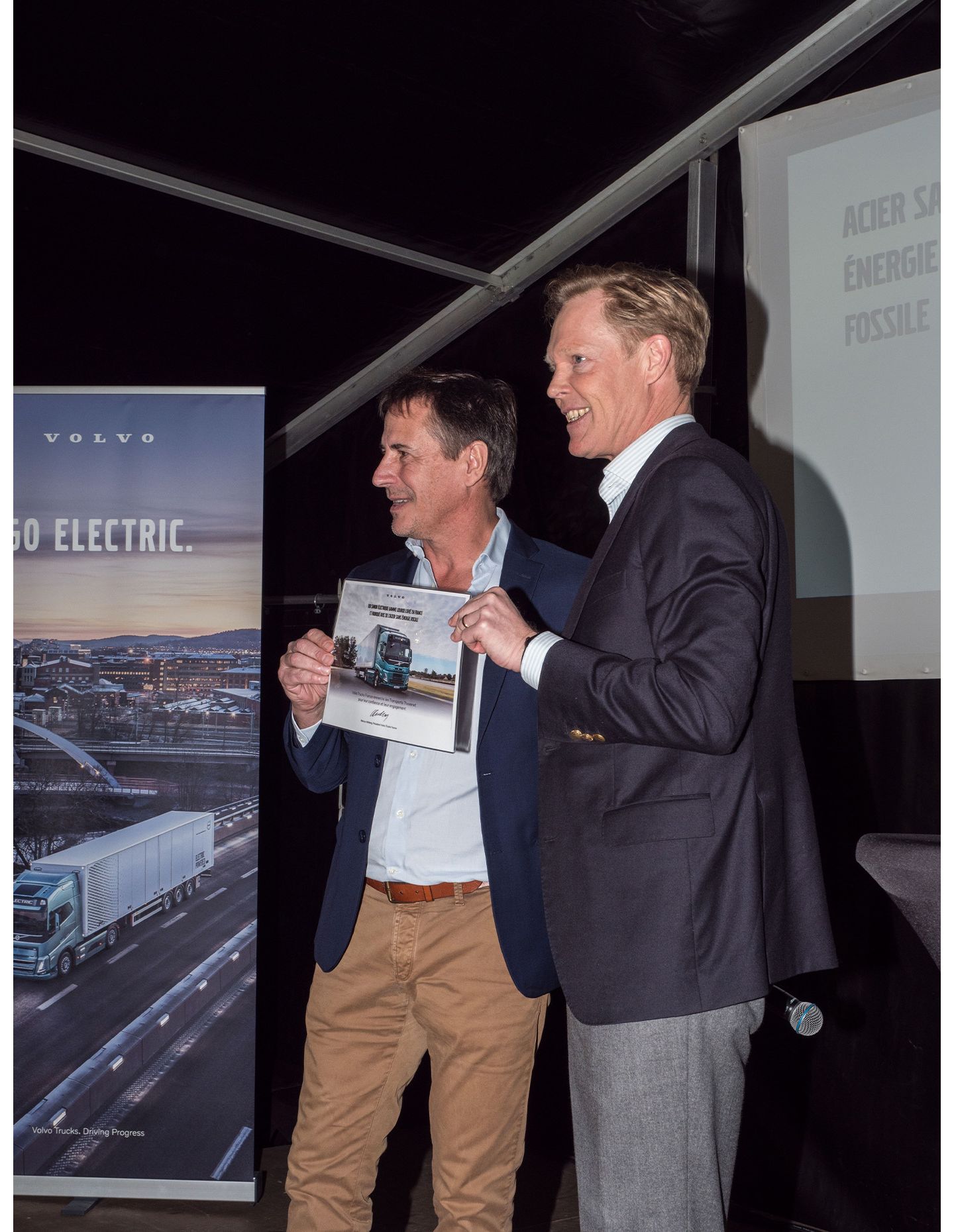 « C’est l’aboutissement d’un projet de longue haleine que nous célébrons aujourd’hui. Nous l’avons initié le 28 avril 2021 et il a été porté par des hommes et des femmes qui partagent les mêmes valeurs, la même idée que nous pouvons agir à notre niveau pour contribuer à un monde meilleur pour les générations futures. Avec ce tout 1er tracteur FM ELECTRIC, les navettes quotidiennes entre l’usine L’Oréal et le Site Logistique Thevenet de Creuzier Le Vieux se feront sans rejeter le moindre gramme de CO2 ni gaz polluants et ce dans un silence absolu ! C’est aussi un des tous premiers camions produit avec des longerons en acier sans énergie fossile : c’est une première mondiale dans la profession », déclare Jérôme Flassayer, Directeur Electromobilité de Volvo Trucks France