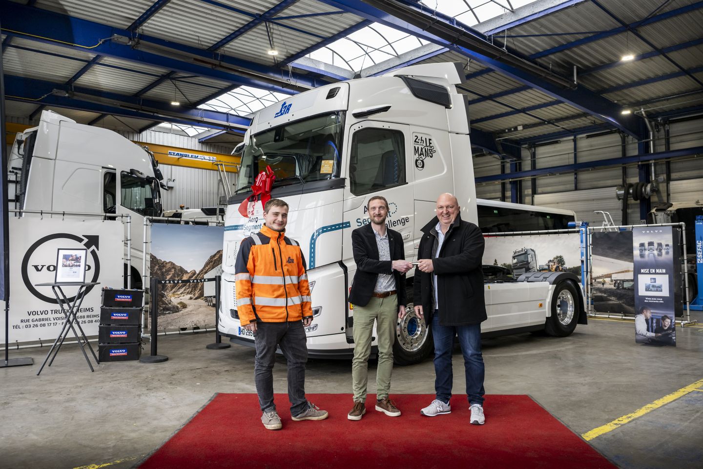Le tirage au sort final, qui s’était tenu lors des dernières 24 Heures Camions du Mans, avait désigné Fabrice Robert, dirigeant de T3R Transport (Thiéblemont-Farémont – 51), comme lauréat du challenge parmi des centaines de participants issus de toute la France. Ce 13 février, il a reçu son Volvo FH AERO, spécialement restylé aux couleurs de la boule gagnante, lors d’une cérémonie organisée au Volvo Truck Center de Reims.
